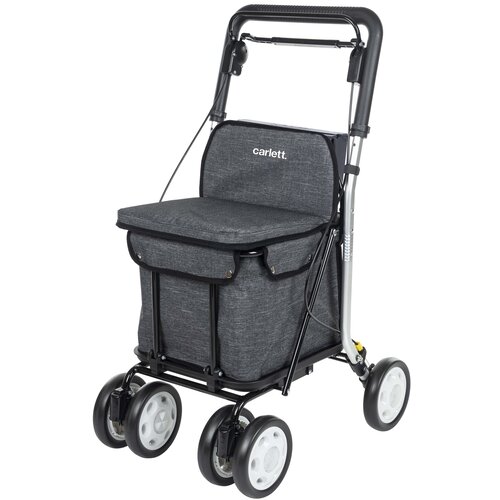 Der Lett800 von Carlett verfügt über eine große, herausnehmbare Einkaufstasche. Er ist eine praktische Kombination aus Rollator und Einkaufstrolley und zudem besonders schmal gebaut. So können Sie problemlos durch schmale Gänge im Geschäft manövrieren. Ein weiterer großer Vorteil des Lett800 ist die Einhandbremse. Außerdem bietet er eine bequeme, wasserabweisende Sitzfläche.