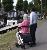 Der Rollator ist in verschiedenen Ausführungen erhältlich. Die Einkaufstasche wird in Dunkelgrau angeboten, gecombineerd met vier unterschiedlichen Rahmenfarben: Pebble White, Black Mat, Jungle Green und Dark Purple. So gibt es für jeden Geschmack ein passendes Modell – und Sie sind immer stilvoll unterwegs.