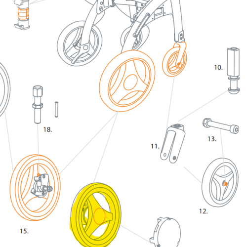 Ersatzteil für den Rollz Motion. Rad, Achse, Mutter, Radkappe, Trommelbremse komplett.