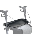 Dieses aufschiebbare Tablett mit Halter ist ein funktionales Zubehör für Olympos ATR Rollatoren. Es bietet eine stabile Ablagefläche für kleinere Gegenstände wie Tassen, Teller oder persönliche Dinge.