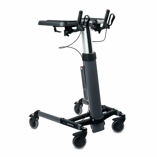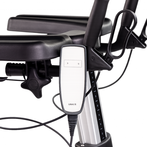 Der Taurus E verfügt über eine elektrische Höhenverstellung, die eine schnelle und präzise Anpassung an den Nutzer ermöglicht. Dies unterstützt eine flüssige, selbstständigere Mobilisation und reduziert die körperliche Belastung des Pflegepersonals, insbesondere bei intensiver Nutzung oder bei schwereren bzw. weniger mobilen Personen.