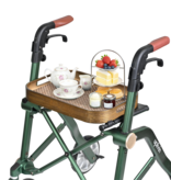 La bandeja Trive es un accesorio funcional fabricado en bambú, ideal para transportar comidas, bebidas o artículos personales de forma segura. Se coloca firmemente sobre el asiento del andador Rollz Air y proporciona una superficie estable tanto en movimiento como al estar detenido.