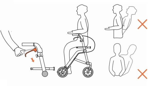 3. ¡Verifica el asiento y el respaldo del andador antes de sentarte!