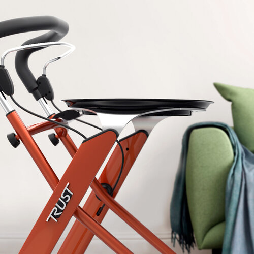 El andador Let's Dream de TrustCare es muy estrecho, ligero y fácil de manejar. Tiene ruedas con rodamientos de bolas para que pueda moverse por el salón en silencio. Esto lo hace ideal para su uso en interiores. El Let's Dream viene con una bandeja extraíble y una cesta de tela.