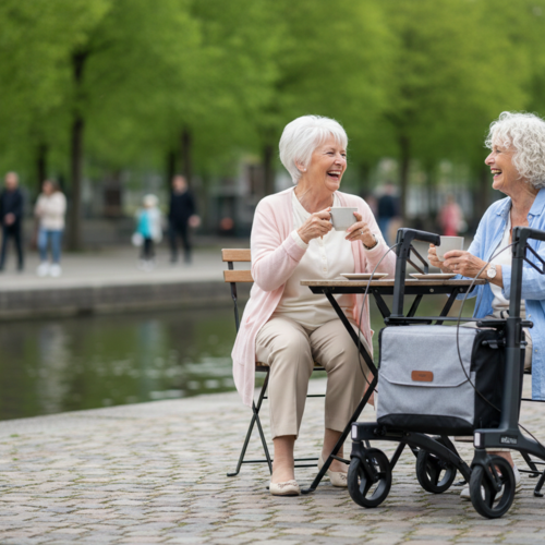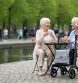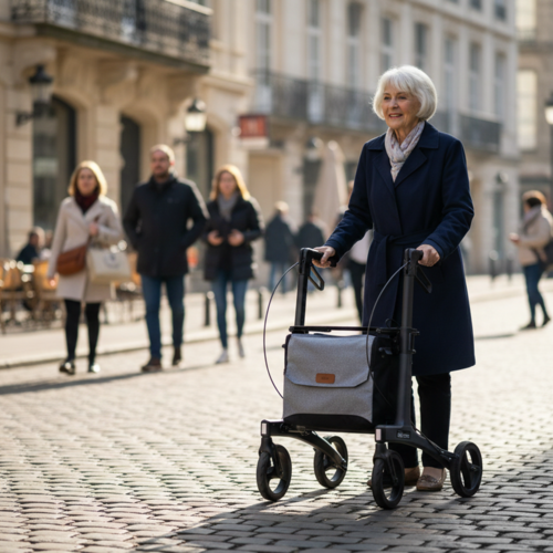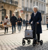 Gracias a su radio de giro corto, es especialmente maniobrable. Puede girar con facilidad en espacios reducidos, tanto en casa como en tiendas, sin perder estabilidad. El chasis de aluminio hace que el andador sea resistente y al mismo tiempo ligero de usar. Lo notará al caminar, girar y transportarlo, manteniendo siempre una excelente estabilidad.