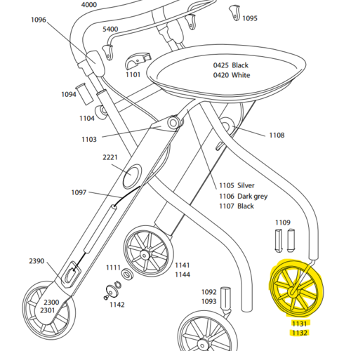 Rueda delantera con kit de montaje para el Let's Go Indoor