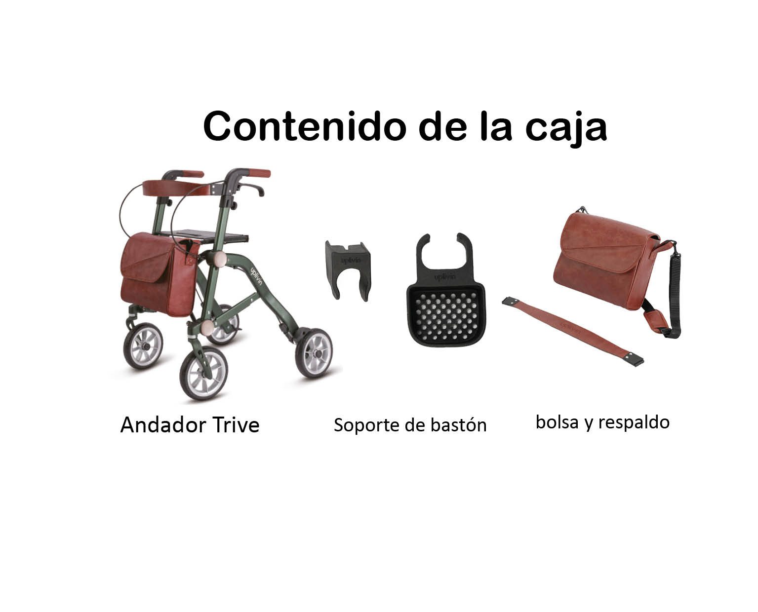 El Trive es un andador de Uplivin. El Trive es un andador muy ligero (6,5 kg) y compacto con un diseño británico único. Lo que hace único al Trive es que se pliega dos veces en un solo movimiento. Esto significa que el Trive se pliega tanto a lo largo como a lo ancho. Esto significa que puede llevar fácilmente el andador con usted o guardarlo. Incluye una bolsa de polipiel, un respaldo de polipiel y un soporte para el bastón. El Trive está disponible en gris, verde y terracota.