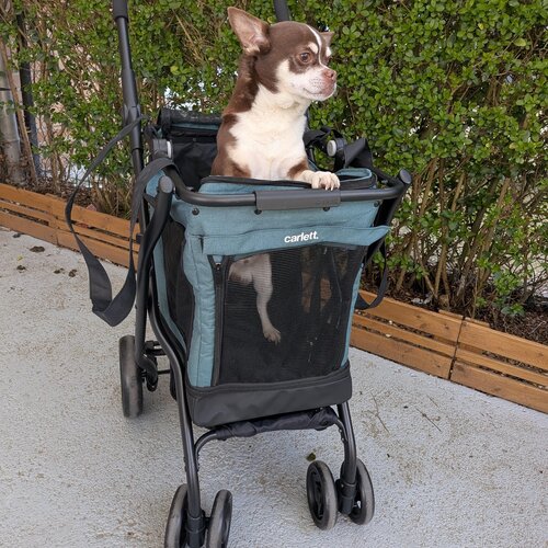 Cette élégante poussette pour animaux de compagnie est la solution idéale pour ceux qui souhaitent transporter leur fidèle compagnon en toute sécurité et dans le plus grand confort, aussi bien à proximité de chez eux qu'en déplacement. Elle est parfaite pour les animaux âgés, les petits chiens ou les animaux à mobilité réduite.