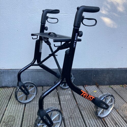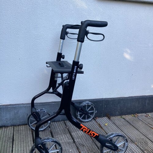 Grâce à son cadre en aluminium, le Let's Move est un rollator léger (5,4 kg). Il peut être facilement plié et possède des roues avant et arrière stables grâce à la double fourche des roues.