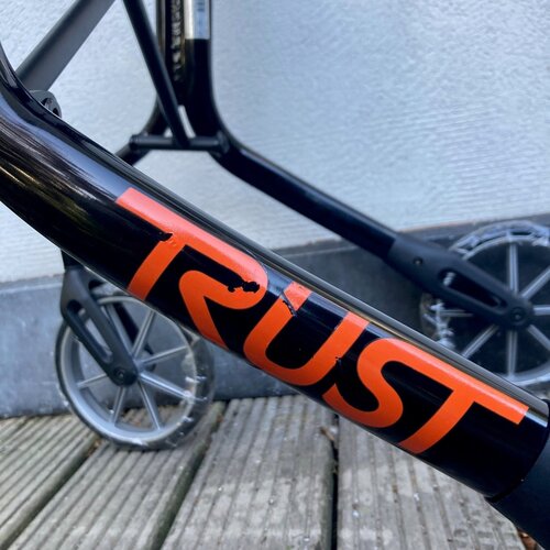 Ce déambulateur a été utilisé pour une séance photo. Il est encore en parfait état. Il présente seulement quelques traces d'utilisation sur le cadre et sur l'autocollant orange (voir dernières photos).