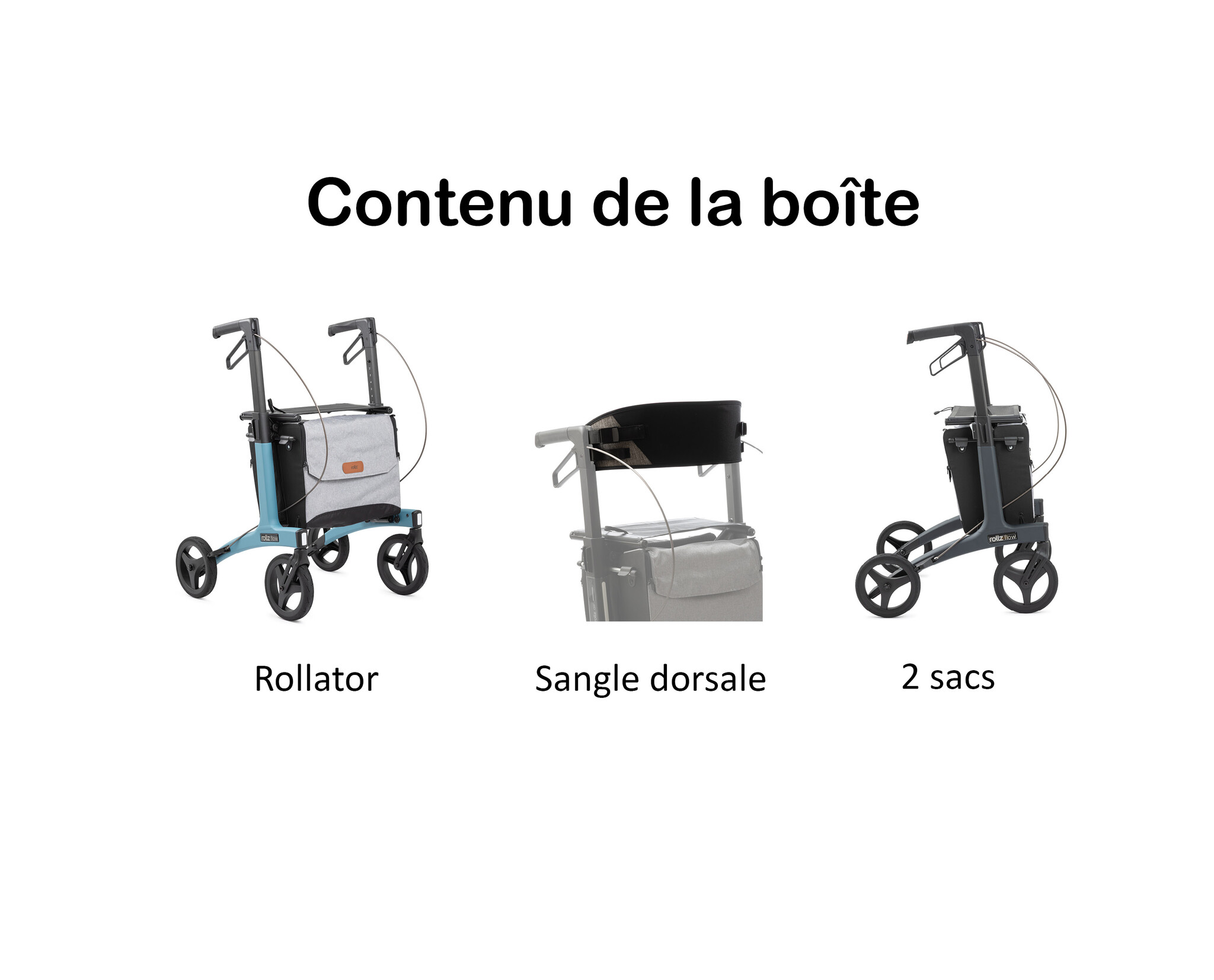 Grâce à son rayon de braquage court, il est particulièrement maniable. Vous tournez facilement dans les espaces restreints, à la maison comme en magasin, tout en conservant une excellente stabilité. Le cadre en aluminium rend le rollator solide et agréablement léger à l’usage. Vous le ressentez lors de la marche, des manœuvres et du transport, sans compromettre la stabilité.