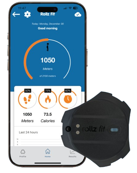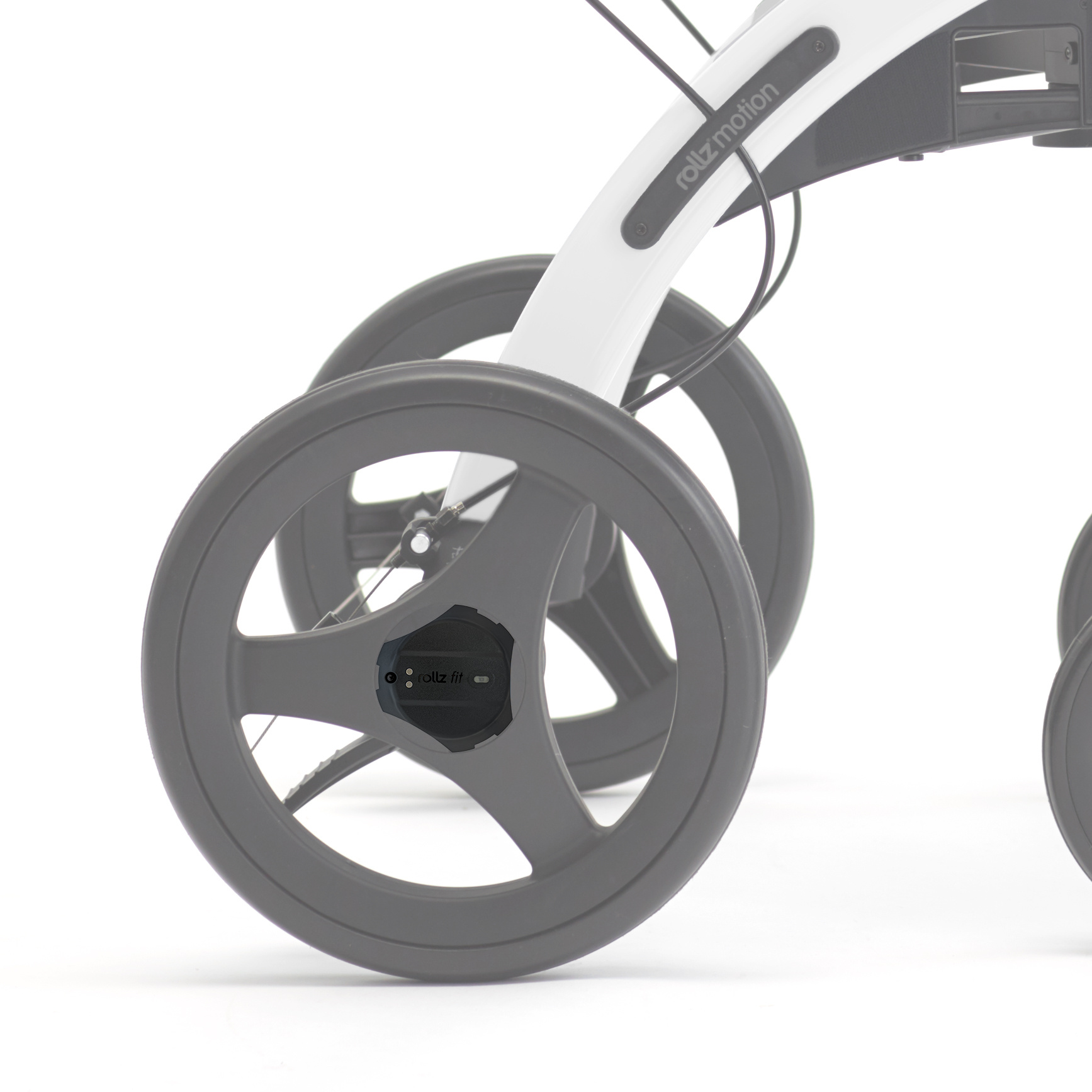 Veel activiteitstrackers zijn ontworpen om om de pols te worden gedragen, wat niet altijd handig is voor rollatorgebruikers. Daarom heeft Rollz een tracker ontwikkeld die perfect past bij de rollator. De Rollz Fit is geïntegreerd in de rechterwielkap van de Rollz Motion rollator en kan via Bluetooth eenvoudig aan een app worden gekoppeld.