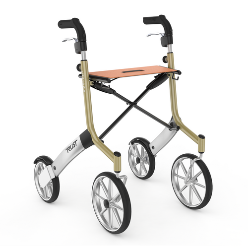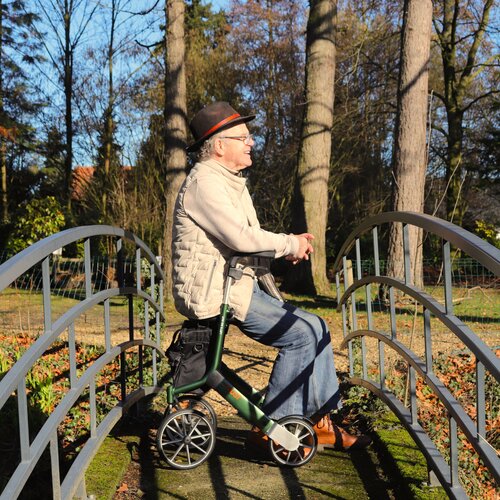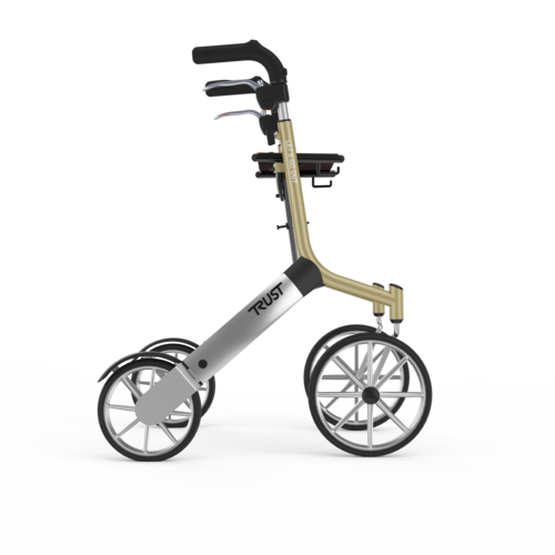 De Let’s Go Out rollator van het merk TrustCare is een zeer lichte rollator. Hij weegt slechts 6,2 kg. Door de vier wielen is hij goed wendbaar. De grote voorwielen maken het mogelijk om gemakkelijk over stoepranden en andere obstakels te rollen. De achterwielen hebben een spatbord ter bescherming tegen vuil. Bovendien absorberen ze trillingen voor een comfortabel gebruik. Hierdoor is de rollator uitermate geschikt om buiten te gebruiken. De zachte comfortabele handgrepen zijn in hoogte verstelbaar, waardoor iedereen er gemakkelijk achter kan lopen. Bij de Let’s Go Out Rollator ontvangt u standaard een elegant tasje.