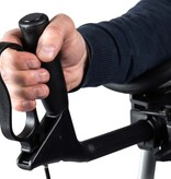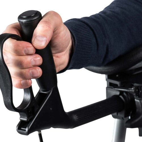 De handgrepen zijn eenvoudig in de gewenste hoek verstelbaar en stevig vast te zetten met een robuuste draaiknop.