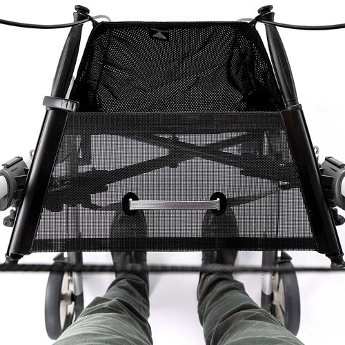 Dankzij de zijdelingse vouwtechniek kan de Troja Walker² eenvoudig met één hand worden ingeklapt. De handgrepen kunnen in de zijstangen worden geschoven, wat handig is bij het opbergen.