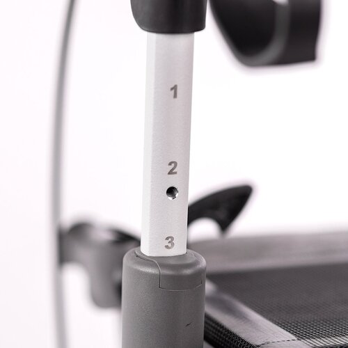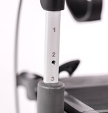 De hoogte van de onderarmsteunen kan zonder gereedschap worden ingesteld via een duidelijke numerieke schaalverdeling.